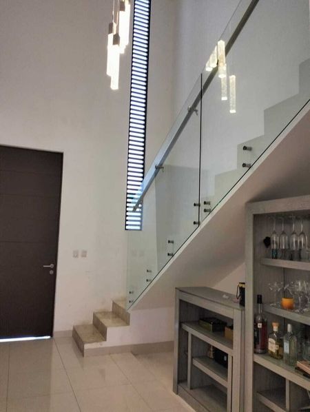 Escalera con barandal de cristal templado