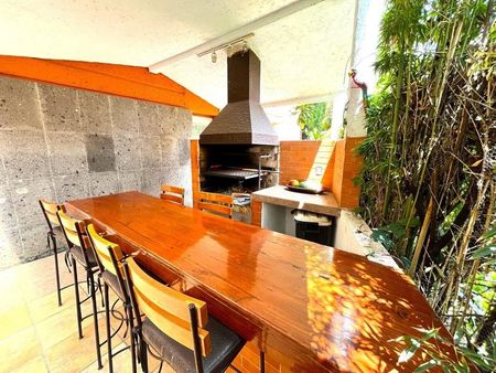 A un costado del jardín se encuentra un área de parrilla techada con barra con capacidad para 10 personas y otra áreas más con capacidad para 20 comensales.