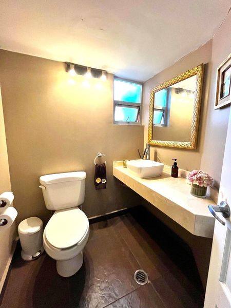 Tiene un espacio que bien podría funcionar como estudio, oficina o recámara con closet en la planta baja.