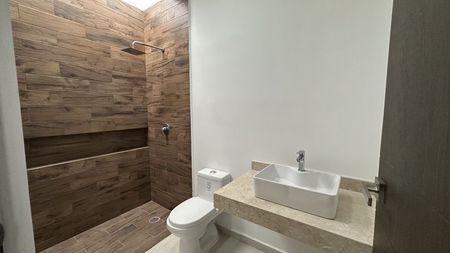 - Recubrimiento en áreas de regadera con cerámico tipo madera.