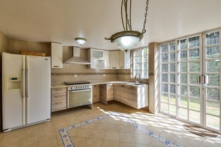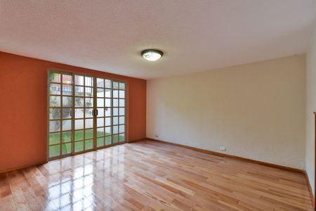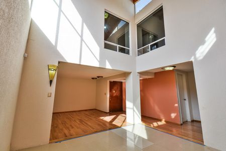 EN CALLE TRANQUILA, ANCHA Y ARBOLADA, CERCA DE PERIFÉRICO Y LOS PUENTES DE "ALTA TENSIÓN". Con muy buen proyecto y en muy buen estado de conservación. Desarrollada en dos niveles, cuenta con sala a doble altura con domo, lo que permite una excelente iluminación; comedor amplio, un estudio, cocina con desayunador, amplia alacena y medio baño de visitas; en medio nivel hacia abajo, linda sala de tv con salida al jardín. En planta alta, recámara principal con baño, vapor y vestidor, 2 recámaras secundarias que comparten un baño grande. Tiene cuarto de servicio, de lavado y 3 estacionamientos techados.