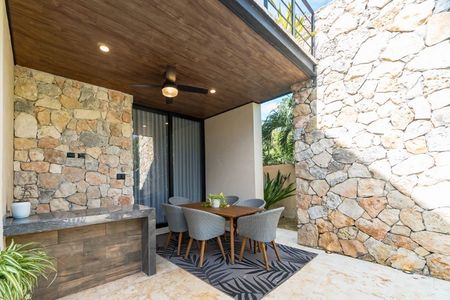 Terraza techada con área de bar