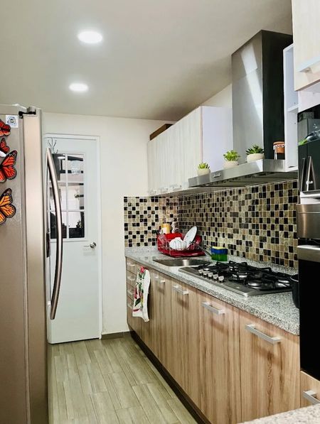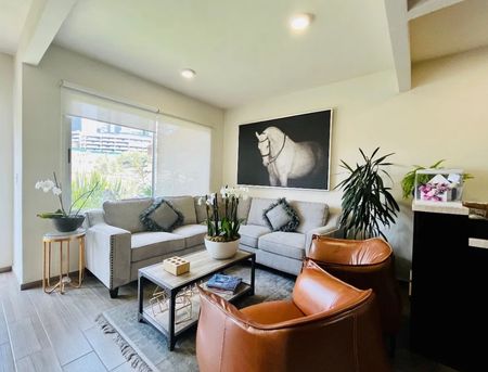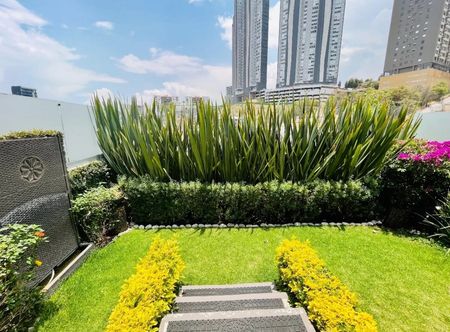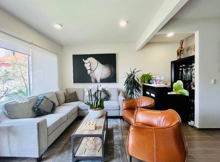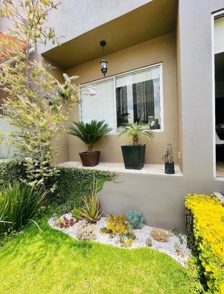 Planta baja sala comedor, con acceso al jardín, cocina integral, medio baño de visitas. Cuarto de servicio y dos lugares de estacionamiento.