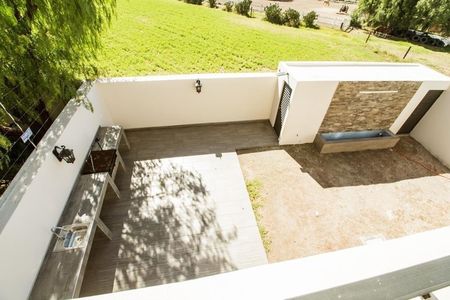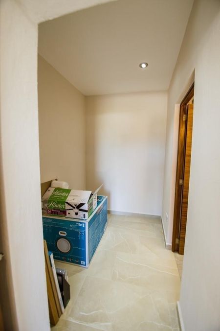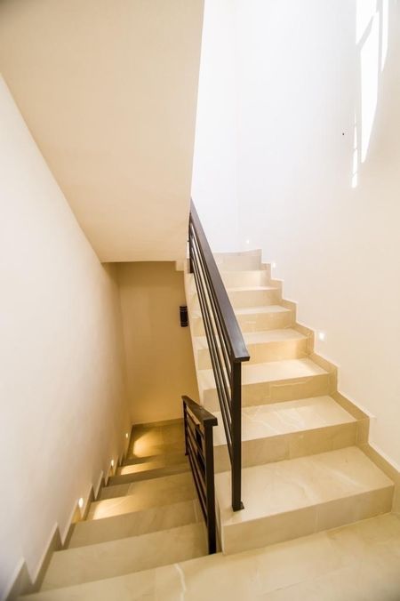 La casa cuenta con 4 habitaciones, una de ellas en primer piso, un home office, cuarto de servicio en el roof garden,asador, bodega, 7 1/2 baños, incluyendo el del cuarto de servicio
