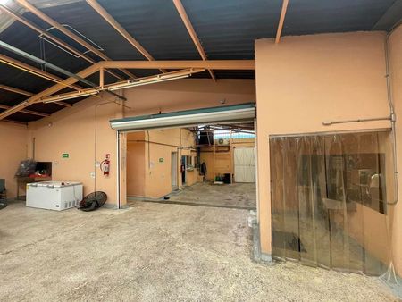 2 baños para empleados, bodega para materia prima, estacionamiento para 2 camionetas 3/12 toneladas.