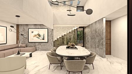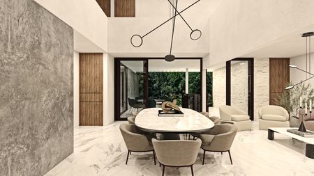 - Sala I Comedor a doble altura con vista a la alberca.