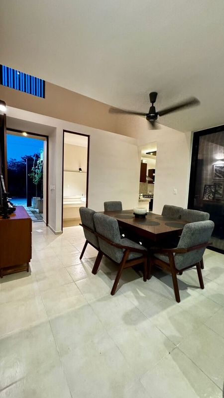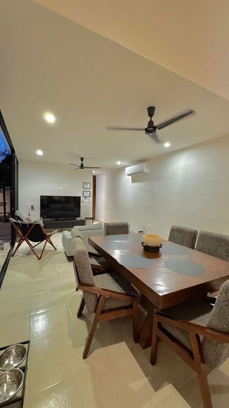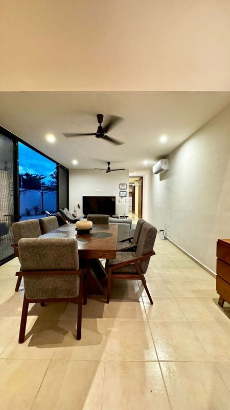 - Sala y comedor con vista a la alberca.