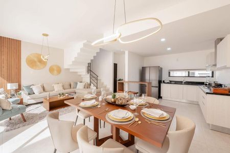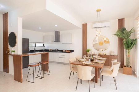 Esta casa te ofrece un diseño contemporáneo con espacios abiertos que maximizan la iluminación y ventilación natural. Disfruta de amenidades como alberca, solárium, parque lineal, teatro abierto, canchas deportivas y un parque de mascotas, todo en el vibrante destino de Cancún. Ideal para familias o como inversión en un entorno que combina naturaleza y modernidad.