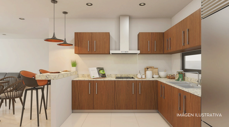 Amplia cocina con barra desayunador