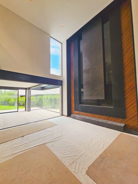 - Sala con chimenea eléctrica y altura de 7 metros