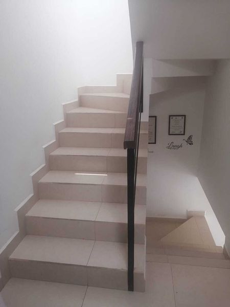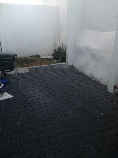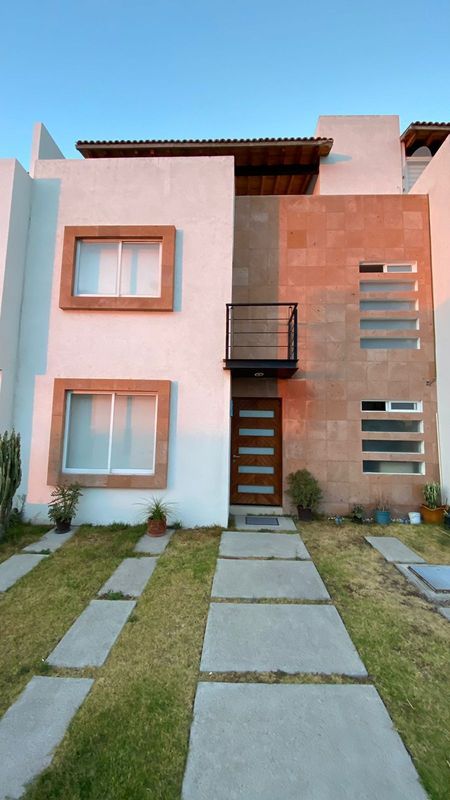 Sala, comedor, cocina integral con barra, cuarto de lavado, covacha, jardín trasero pequeño, estacionamiento para 2 autos, 1/2 baño de visitas