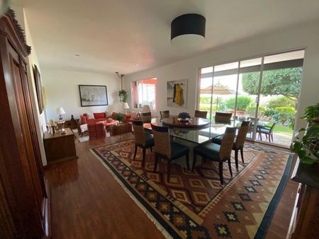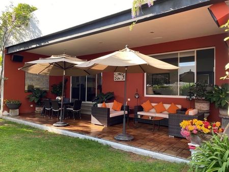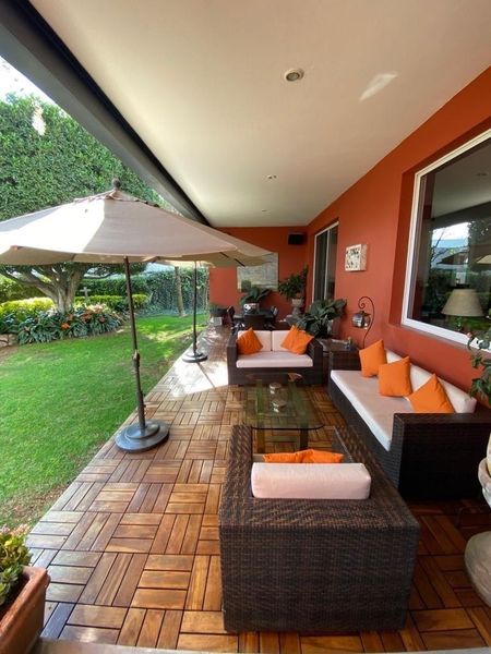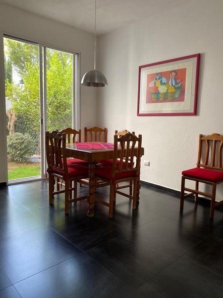 HERMOSA CASA EN UNA DE LAS PRIVADAS MAS EXCLUSIVAS DE JURIQUILLA. CUENTA CON 3 RECAMARAS CON VESTIDOR Y BAÑO CADA UNA, BALCON AMPLIO QUE DA A LAS 3 RECAMARAS CON VISTA AL JARDIN, HALL DE TV, SALA, COMEDOR, ESTUDIO EN PLANTA BAJA CON BAÑO, COCINA AMPLIA EQUIPADA CON ISLA Y 2 DESPENSAS, COCHERA PARA 6 COCHES, 2 BODEGAS, JARDIN GRANDE CON TERRAZA TECHADA Y BAÑO, CUARTO DE SERVICIO GRANDE, AREA DE LAVADO.