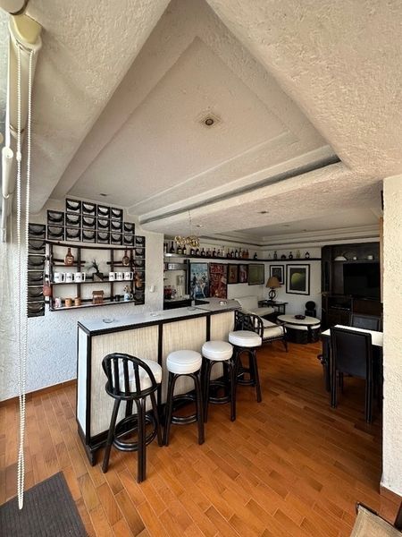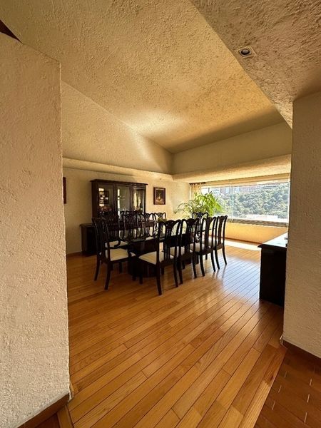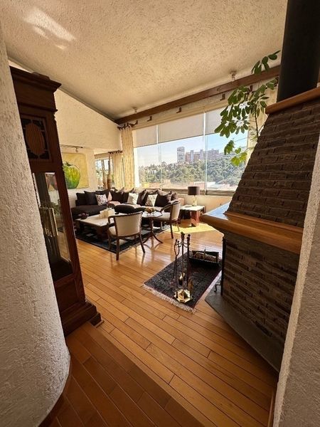 Sala con chimenea , comedor , cocina amplia, cuarto de servicio y área de lavandería en el mismo nivel que la cocina , desayunador, cuarto de juegos, despacho con chimenea, cuarto de tv