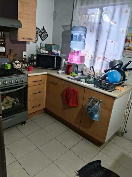 Consta de sala, comedor, cocina integral, patio de servicio con área de lavado, 3 recámaras, 2 baños completos y 1 cajón de estacionamiento.