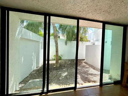 Área social cerrada con aire acondicionado y vista al jardín.