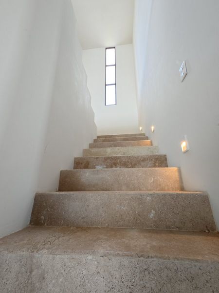 •Detalles de piedra, mármol y pasta texturizada en fachada.