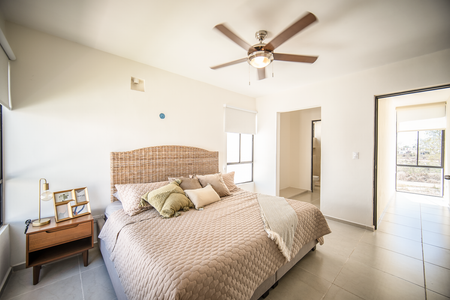 Recámara principal con clóset vestidor y baño completo