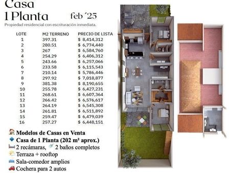16 residencias con terrenos de 210 a 380 m²