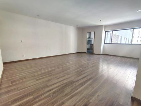SALA COMEDOR CON AMPLIOS VENTANALES QUE HACEN AL DEPARTAMENTO CÁLIDO, ALEGRE, POSITIVO, CON MUCHA LUZ, EL PISO TIPO MADERA LE DA UNA ELEGANCIA MUY PADRE.