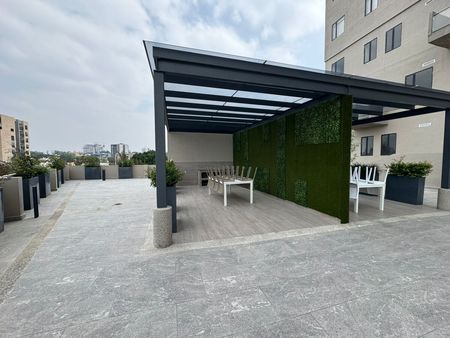 Departamento en planta baja con amplia terraza privada de 50 m² y vista a la Reserva del Parque Colomos. Cuenta con 3 recámaras, 2 baños, sala, comedor, cocina integral y cuarto de lavado. Tiene 100 m² interiores + 2 estacionamientos. El desarrollo ofrece alberca, gimnasio, coworking, ludoteca, salón de eventos, pet park, asadores y fire pit.