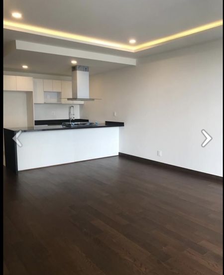 Medio baño para vistas, amplio cuarto de lavado integrado al departamento, cocina integral abierta con barra de granito, pisos de madera, el balcón cuenta con vidrio templado el cual permite una espectacular vista hacia Av. Santa Fe.