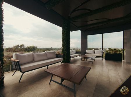 Este lugar es la fusión perfecta entre naturaleza y arquitectura moderna . Ubicado sobre un terreno de 2,500 m², este desarrollo integra materiales que armonizan con el entorno y está situado a solo pasos de la Av. Cobá, la vía principal hacia la zona hotelera y las playas de Tulum
