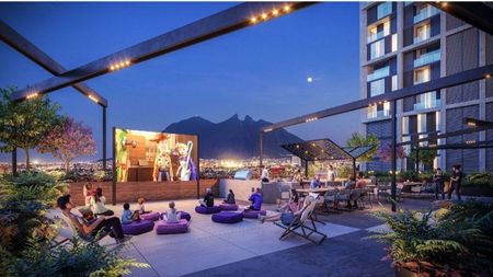 Entretenimiento que incluyen: cine al aire libre, área pet friendly, zona de negocios, cocina especializada y terraza.