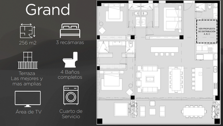 Acabados de alta calidad como pisos en mármol de grandes dimensiones, cocinas de altísima calidad, maderas reales, cancelaría antihuracán y altura de piso a techo de 2.9m.