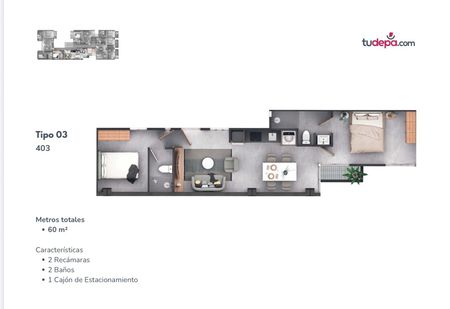 • 1 cajón de estacionamiento (no apto para camionetas, costo adicional)