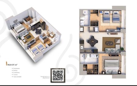 **Los departamentos van desde los 55m2 hasta los 173m2. De 1, 2 y 3 recamaras, 1, 2 y 2.5 baños, cocina, sala, comedor, vestidor. Algunos con cuarto de servicio y family room.**