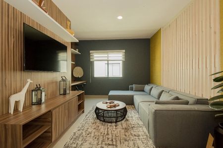 Sala de TV que puede transformarse en una tercera recámara.