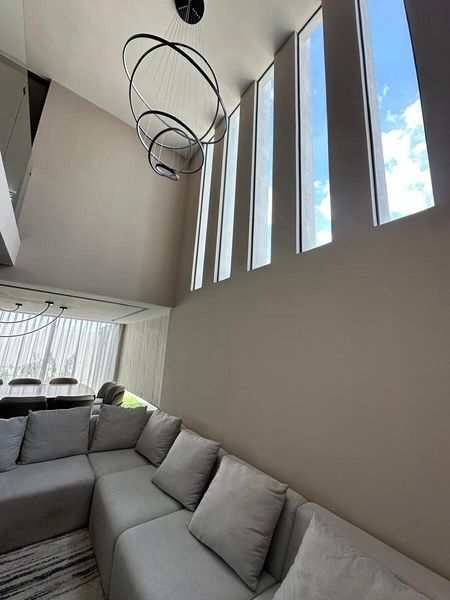 -Sala de doble altura con chimenea