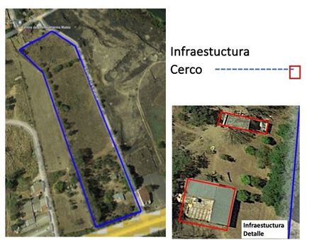 Construcción: Casa, bodega, depósito, terraza, delimitación con malla