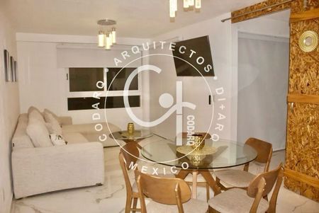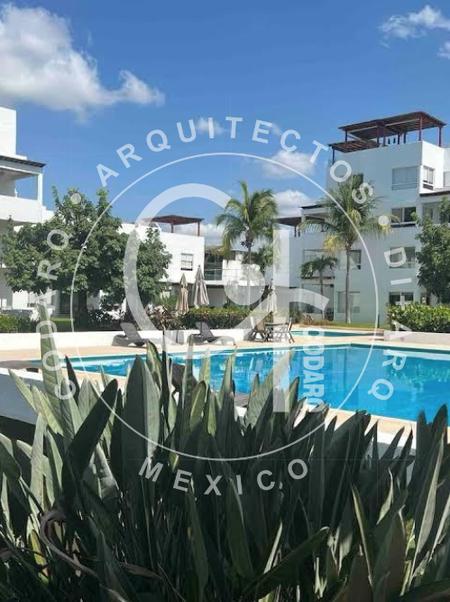 El departamento en 2ndo y 3er piso que cuenta con 3 recamaras con baño completo. Una recamara en planta baja, la principal y secundaria en planta alta. Cuenta con cocina integral abierta que convive con la sala y el comedor. Terraza que conecta con la sala, comedor y la tercera recamara al igual que un balcón en la recamara secundaria. En la parte superior cuenta con un roof garden y jacuzzi perfecto para ver el atardecer y la hermosa vista hacia el centro del condominio que cuenta con alberca, jacuzzi y áreas sociales como cancha de padel y de futbol. Al igaul que centro de negocios, ludoteca, gimnasio y estacionamiento para visitas. El condominio cuenta con seguridad 24 horas y se encuentra ubicado a 5 minutos de la playa.