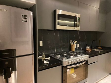 Loft a estrenar con acabados de lujo en Roma Norte, piso 7 , habitación con un baño, cocina y 1 estacionamiento. Sistema Smarthome, departamentos con sistema inteligente de iluminación y audio LUTRON (conexión inalámbrica a pantallas, persianas, timbre, cámaras, etc ) El Desarrollo tiene bellas amenidades en un espectacular roofgarden: business center, gym, salas lounge, carriles de nado, skybar, linda jardinería.