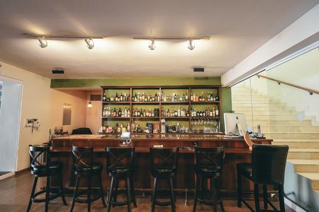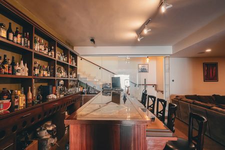 Salón de usos multiples que incluye biblioteca, sala de televisión y cantina con barra y cava.