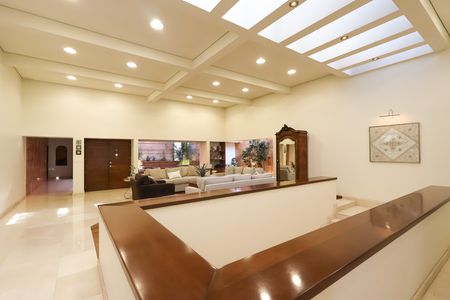 Patio central con fuente y domo e instalación diseñada para futuro elevador.