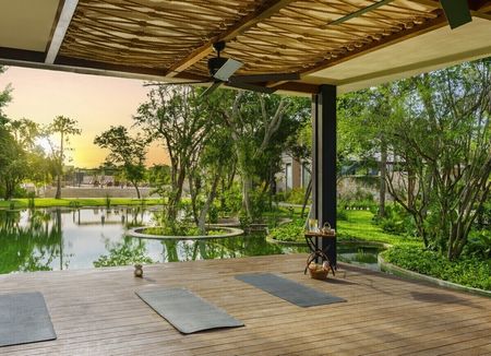Área de yoga y spa con tratamientos mayas y asiáticos