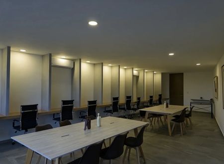 Lobby con seguridad y sala de espera