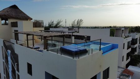 Amenidades: Rooftop con vista al mar, Alberca infinita, fuente, hamacas, elevador.