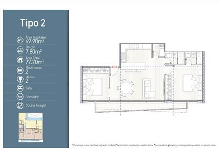 Área habitable: 69.90 m2