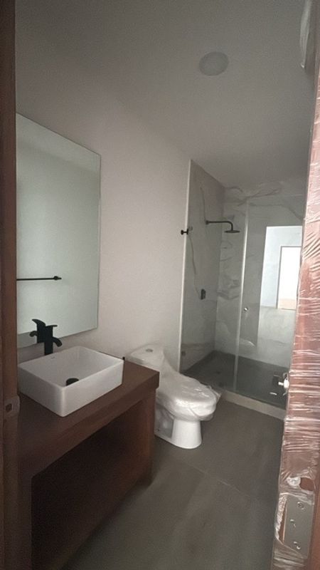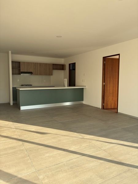 Cuenta con sala comedor, cocina integral, dos recamaras amplias e iluminadas, dos baños completos con cancelaria, closets de la mejor calidad, pisos en recámaras de madera y en sala comedor de loseta .