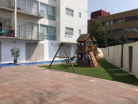 Vigilancia 24 horas, dos elevadores, alberca, gimnasio, baños, salón de usos múltiples, juegos infantiles.