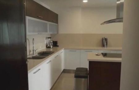 El departamento tiene sala, comedor, cocina equipada, area de servicio, terraza, tres recamaras cada una con baño propio y estacionamiento cubierto para dos autos.