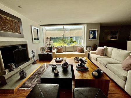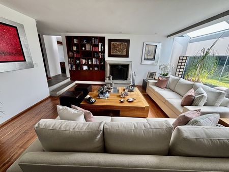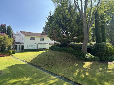 Excelente ubicación a 800m de la carretera México–Toluca, a 5 minutos de Santa Fé, 5 minutos de Vista Hermosa y 20 minutos de Interlomas. Es una espaciosa casa de 365m2, moderna, iluminada y ventilada, con 3 recámaras, cada una con baño completo, la recámara principal con walking closet y baño completo, family room, terraza techada con sala de estar, sala comedor con chimenea, salón de juegos, comedor auxiliar, cuarto de servicio con baño completo, cuarto de lavado, cocina integral moderna con isla, amplia alacena y acabados de lujo y 5 lugares de estacionamiento.