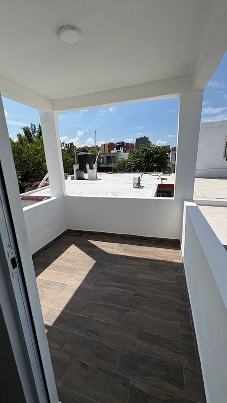 Dos haitaciones que conoarten baño, habitacion secundaria con closet y terraza.