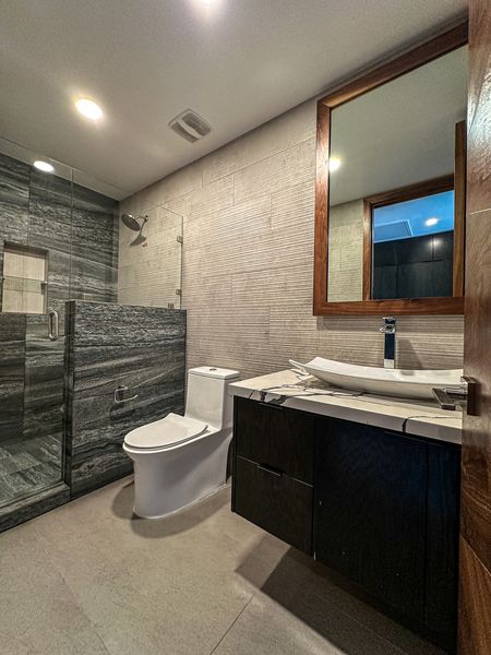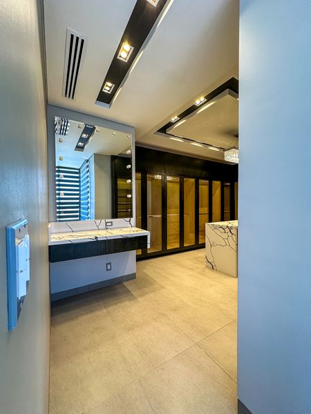 Recámara principal con walk-in closet y baño completo con doble lavabo