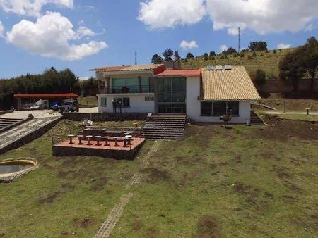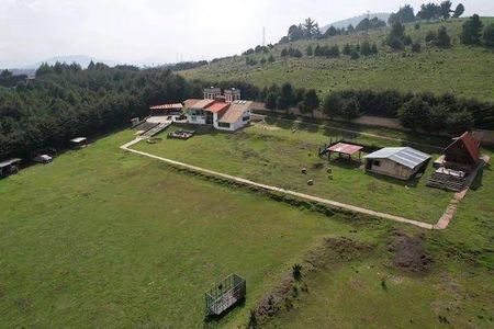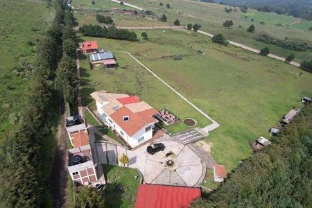 22,000 m2 de terreno ejidal totalmente bardeado, casa principal 370.00m2 con 4 recamaras, cocina con estufón industrial, area de cantina, sala muy amplia con chimenea central, cuarto para cava o quinta recámara, 3 baños completos, casa de vigilancia dos niveles, cuarto de maquinas 2 niveles con planta de luz, camino perímetros de concreto estampado 500 metros, estacionamiento techado para 5 autos, fuente y pileta, troje michoacana con baño completo y área para cocina, bodega de 200 M2, varias jaulas para animales etc. Ubicada en las cruces santo tomas ajusco, tlalpan, CDMX.