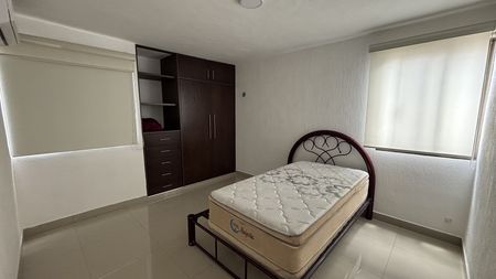 Recámara secundaria con closet de pared vestido, aire a acondicionado y persianas nuevas