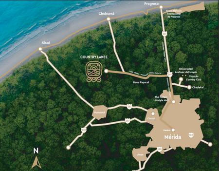 Hermoso lote junto al lago en Country Lakes. Está ubicado en Mérida a 10 minutos de las playas de Chuburná y a 15 minutos del periférico, en una zona de alto crecimiento y proyección económica.